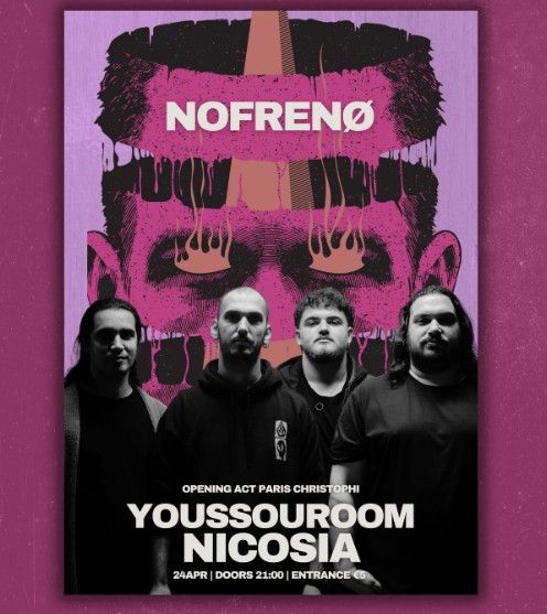 Nofrenø close out their winter season with a live celebration at Youssouroom (Stou Teli) in Nicosia, Cyprus, on Friday 24 April 2026. Doors open at 21:00. Entry is €5.