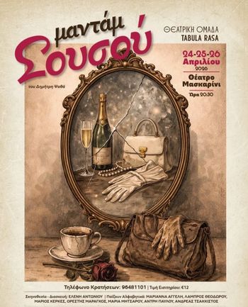 This classic Greek comedy production by theatre group Tabula Rasa takes to the stage in Nicosia, Cyprus, for three performances on 24, 25 and 26 April 2026 at Mascarini Theatre, starting at 20:30. The show marks the group's fifth production and is performed entirely in Greek.