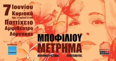 Natassa Bofiliou, Themis Karamouratidis, and Gerasimos Evangelatos present "Metrima" (Counting), a live musical performance at the Ancient Kourion Theatre in Limassol, Cyprus, organised by Sol Music Productions. Born at a moment of transition — twenty years of shared artistic journey become the occasion for a live counting of songs, words, and moments.
